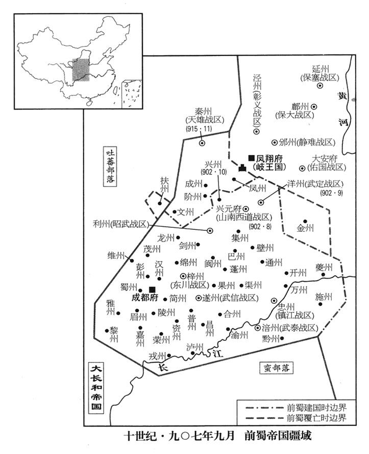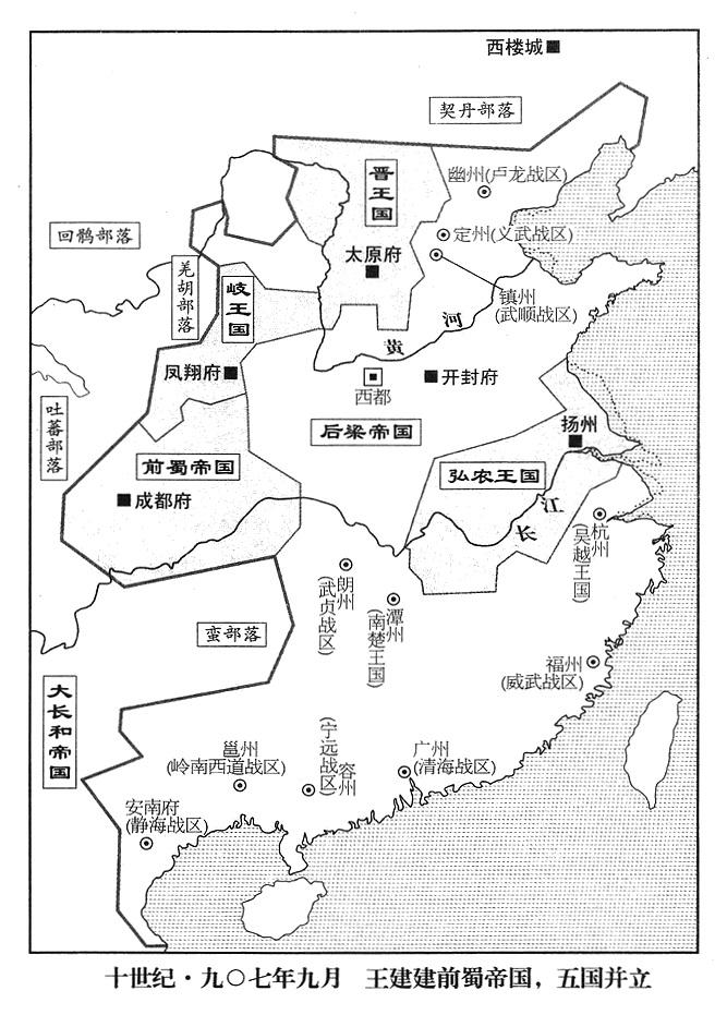 九月二十五日,王建(本年六十一岁)登上皇帝宝座(一任高祖),国号大蜀(史称前蜀,以别于西蜀、后蜀)。